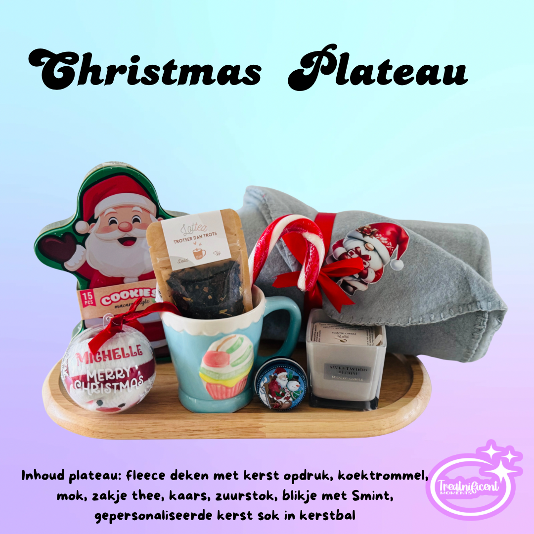 Breng warmte en gezelligheid in huis met ons prachtige Christmas Plateau een stijlvol houten plateau dat volledig is gevuld met kerstige verwenitems. Dit unieke cadeaupakket is perfect om te geven en om heerlijk van te genieten tijdens de feestdagen.